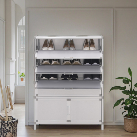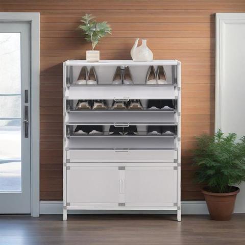 大容量モダンエントランスキャビネット超ステンレススチール靴ラックタッカースタイル省スペース収納ホームリビングルーム