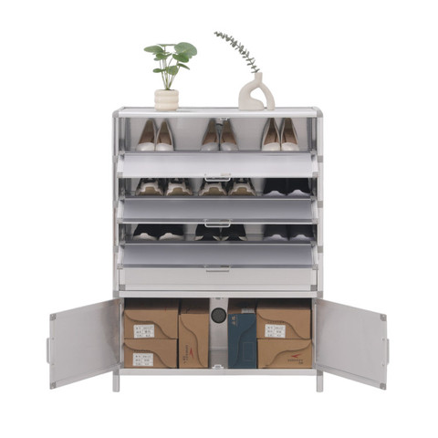 モダンなダブルドア大容量ステンレススチール靴キャビネット多層収納フラットドアホーム家具付き
